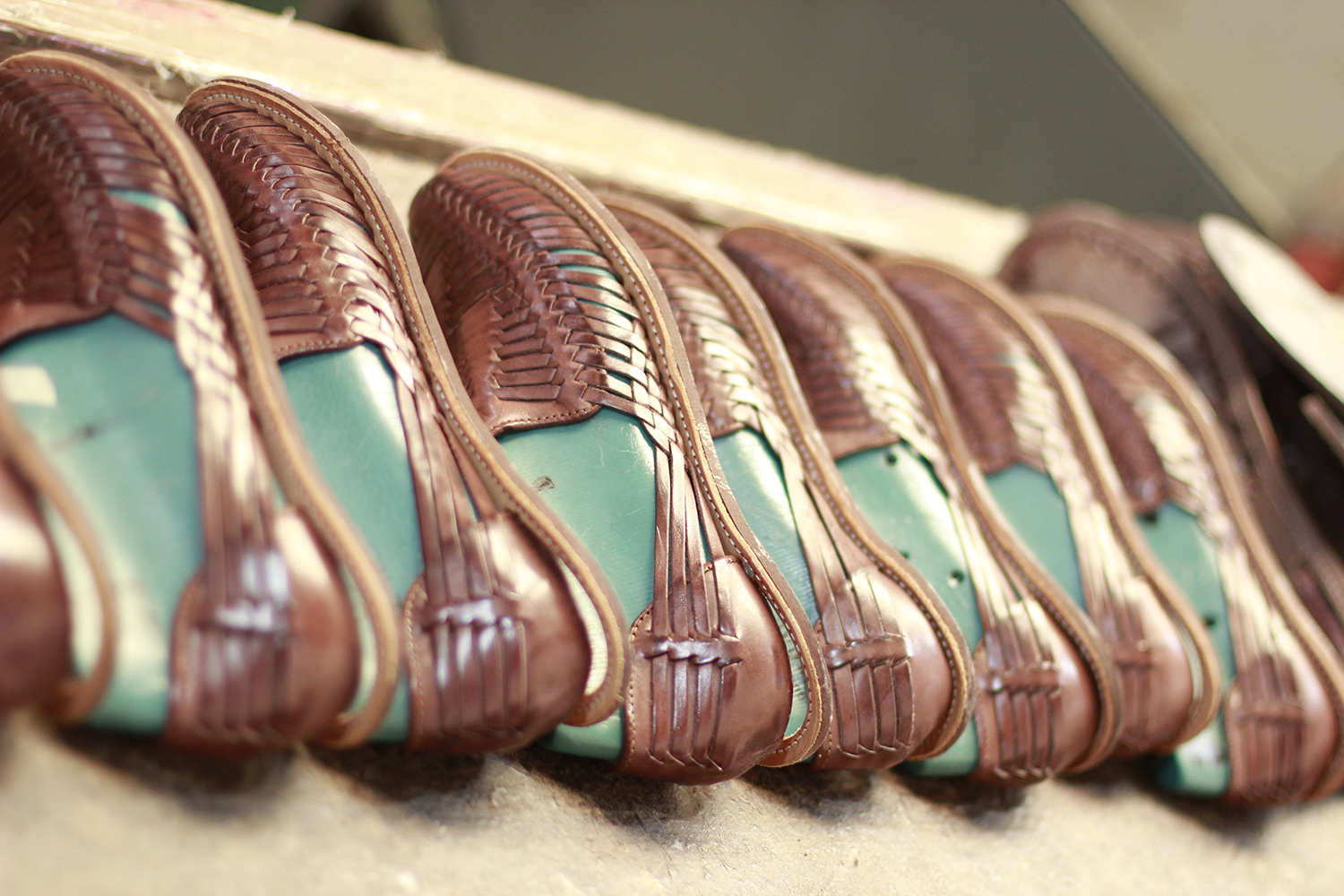 Chamula huarache footwear is equally as splendid and notable for the exclusive use of vegetable-tanned leathers. The natural vegetable tanning process results in supple, breathable leathers, perfectly adapted for light footwear. Each piece of leather is hand painted and used to create comfortable, unique footwear that combines elegant silhouettes with native Mexican embellishment.